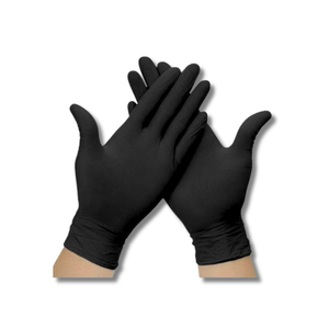 Guanti monouso in nitrile nero, ideali per chi cerca resistenza e igiene.